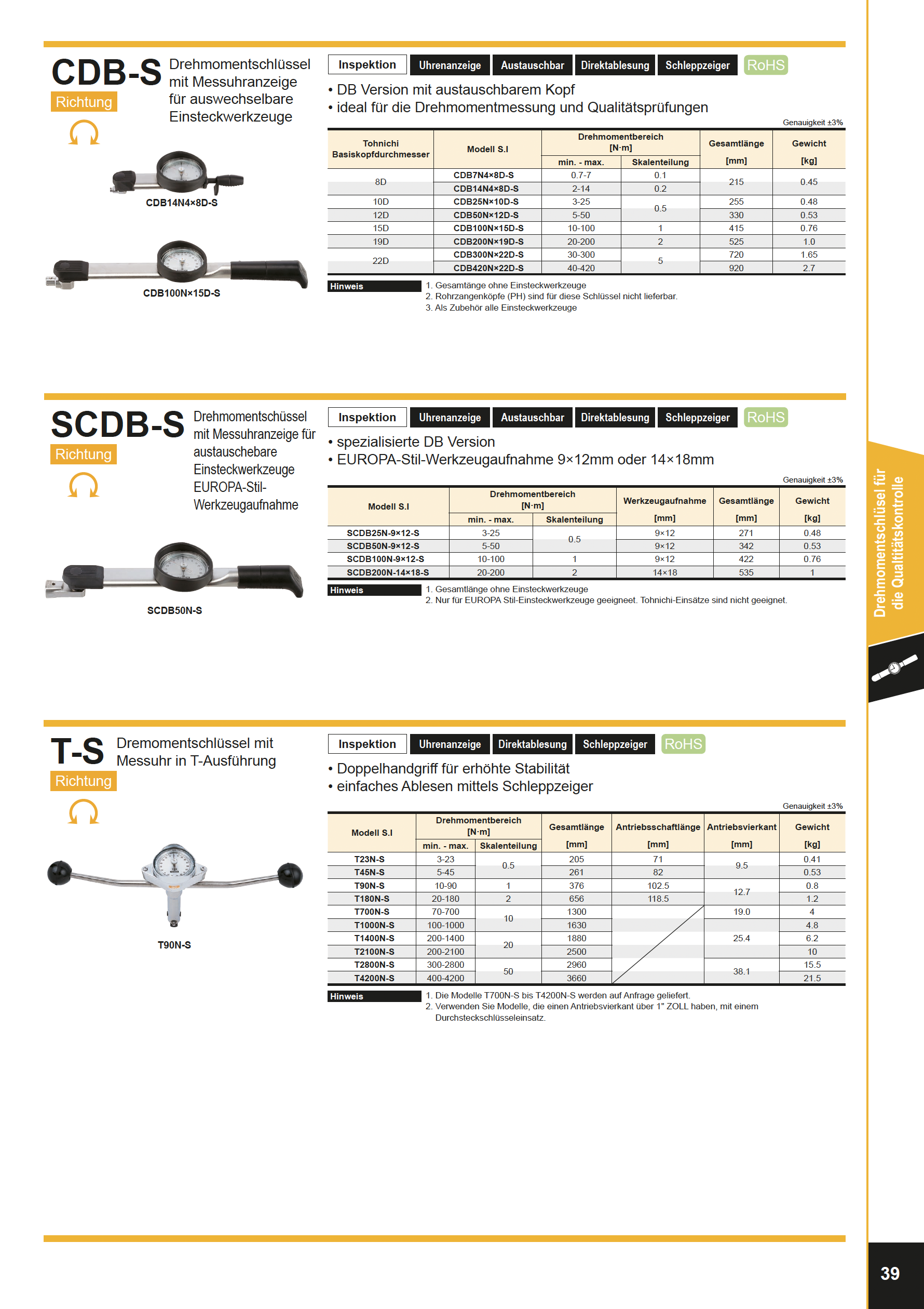 | Modell | Art.-Nr. | Drehmoment [N·m] | Graduierung | Kopf-Aufn | Länge [mm] | Gewicht [kg] | Griff |