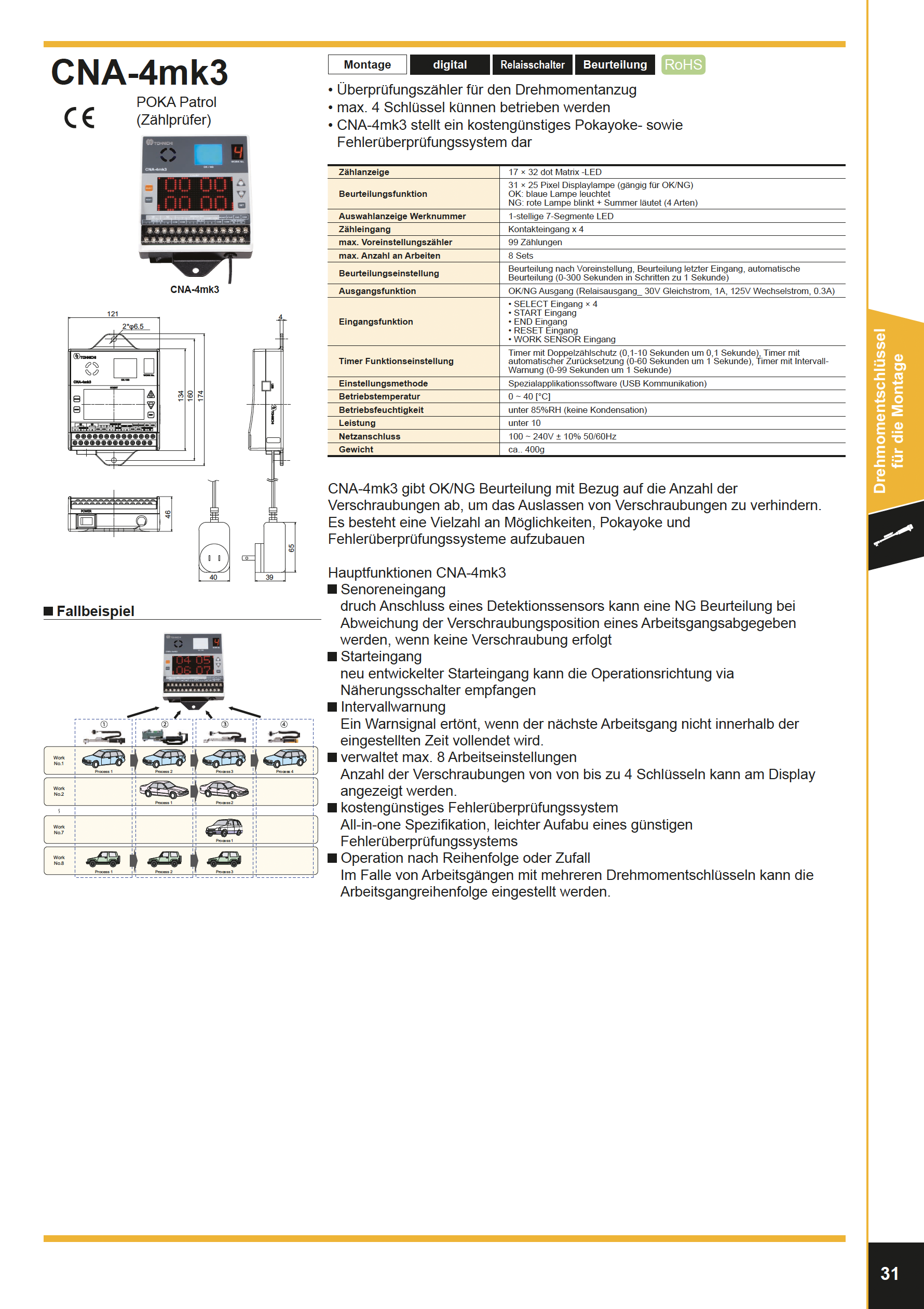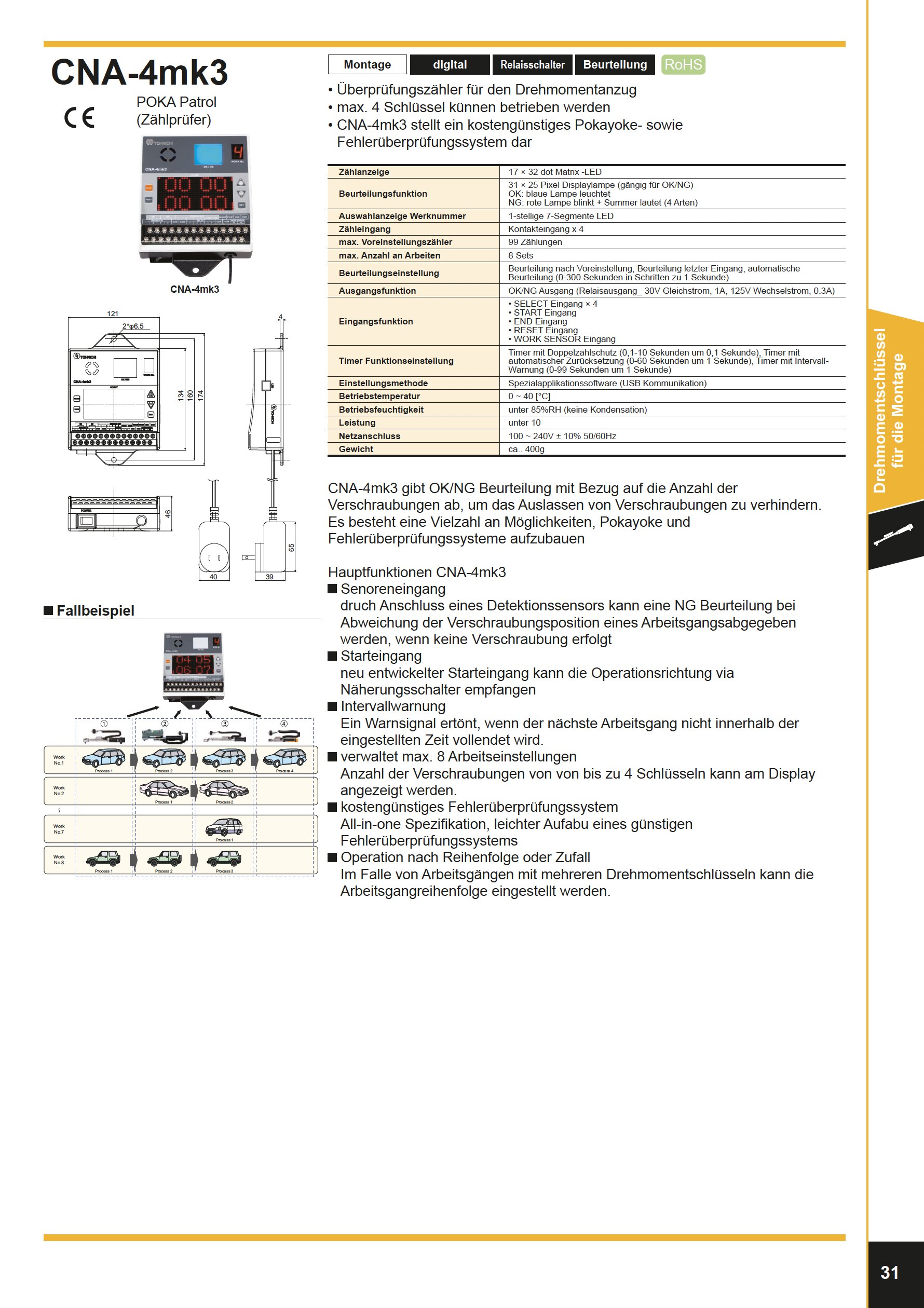 - Zur Überwachung der Verschraubungsanzahl und zur Produktionssteuerung. In Verbindung mit Drehmomentschlüsseln vom Typ LS bildet der CNA4-mk3 ein Fehlerschutzsystem (error-proofing).