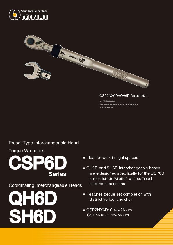 QH6D and SH6D series interchangeable heads have significant smaller exterior dimensions than 8D series. Ratchet head QH6D uses 48-tooth gear. This prevents failed ratcheting due to half the conventional swing arc (7.5°), and offers rapid tightening.