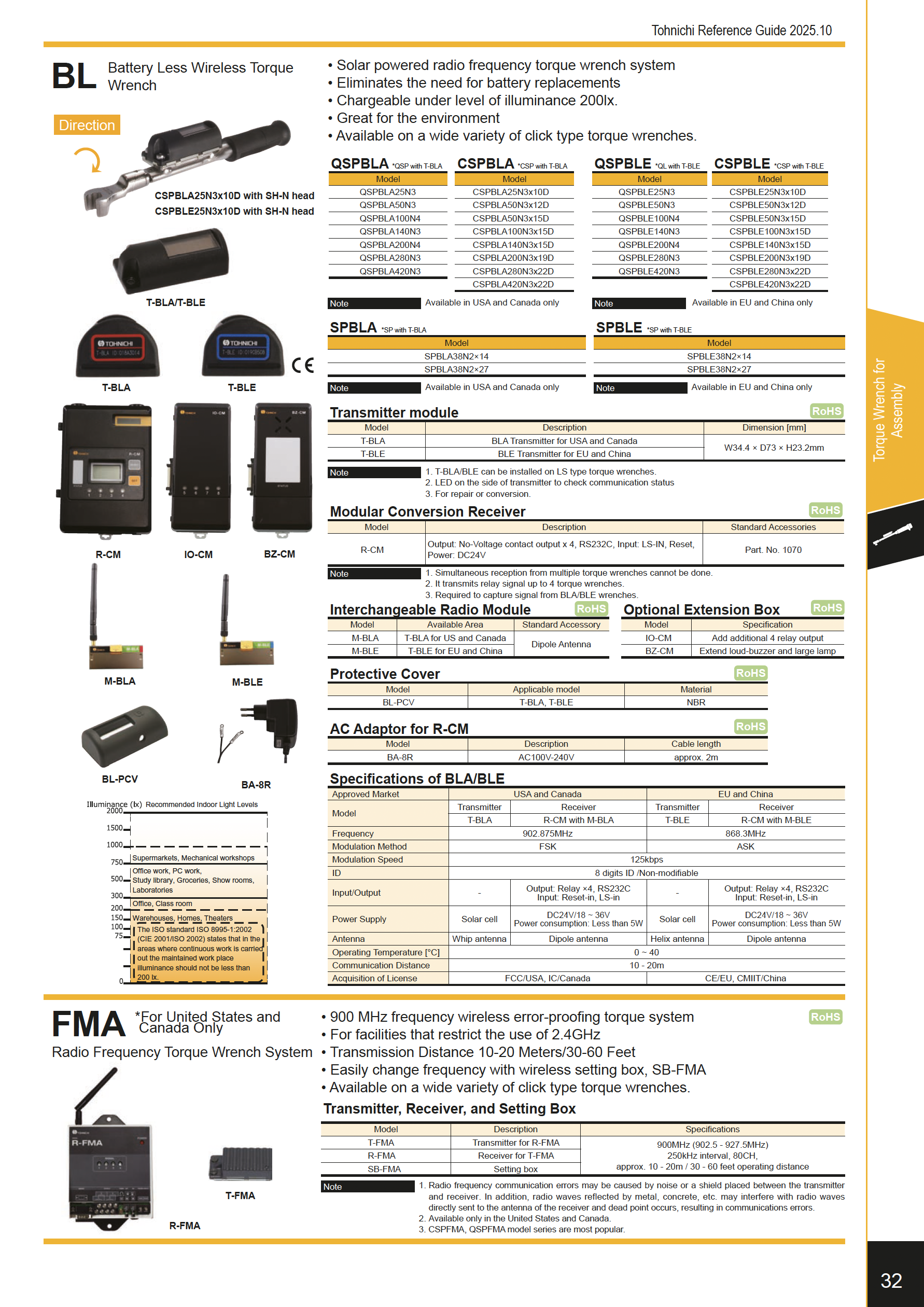 - Series QSPBL / CSPBL = solar power type wireless Pokayoke torque wrench (see Downlads).
